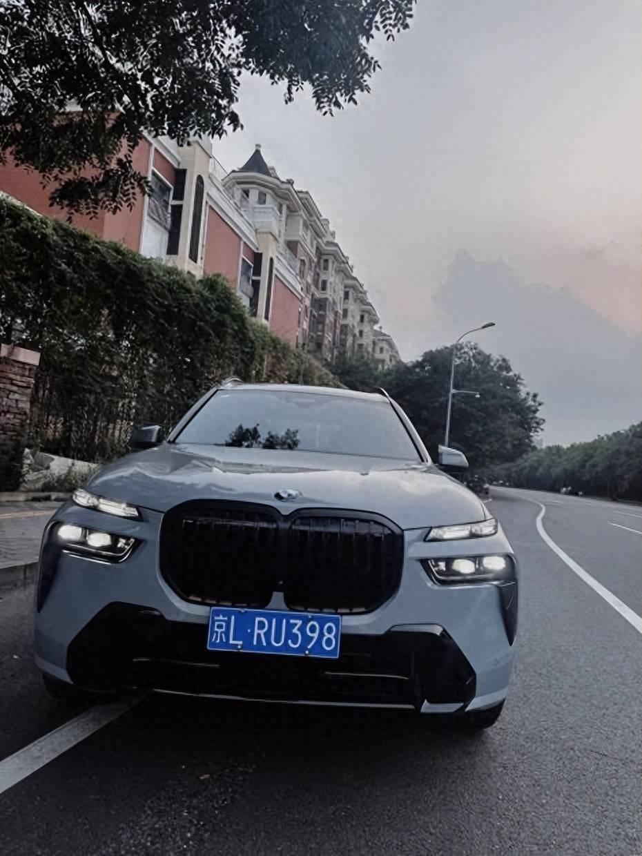 雨过天晴,我将宝马X7停在路边。夕阳的余晖洒在车身表面,展现出壮硕霸气的肌理线条。